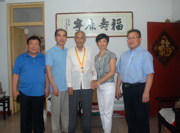 8月31日,在世界反法西斯戰(zhàn)爭勝利70周年來臨之際,省住建廳機(jī)關(guān)黨委書記王國章、離退辦處長趙月華,在總經(jīng)理李華偉、副總經(jīng)理張樹臣陪同下,看望慰問了曾參加過抗戰(zhàn)工作的離休老干部王福明同志,并帶來“中國人民抗日戰(zhàn)爭勝利70周年紀(jì)念章”和慰問金。