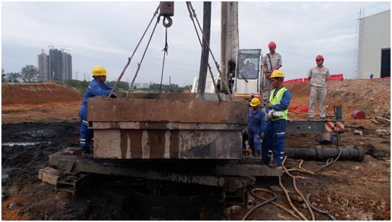 本工程2018年8月22日開始施工,于2019年3月15日竣工,φ1800mm鉆孔灌注樁合同工作量為1600m,實(shí)際完成工作量為1252m;φ1600mm鉆孔灌注樁合同工作量為1460m,實(shí)際完成工作量為704m;φ1500mm鉆孔灌注樁合同工作量為520m,實(shí)際完成工作量為484m;φ1200mm鉆孔灌注樁合同工作量為1180m,實(shí)際完成工作量為764m?;炷翉?qiáng)度為C35,混凝土方量5955m³。投入旋挖鉆機(jī)2臺(tái)套,沖擊鉆機(jī)2臺(tái)套,汽車鉆機(jī)2臺(tái)套,吊車2臺(tái),挖掘機(jī)1臺(tái)。