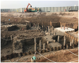 本工程于2017年10月14日開(kāi)始進(jìn)行止水帷幕施工,截止至2018年11月2日完成止水帷幕施工;2017年12月進(jìn)行降水井成井施工,并于12月31日開(kāi)始進(jìn)行降水工作;2018年1月2日開(kāi)始土方開(kāi)挖工作,2月4日起跟隨開(kāi)挖進(jìn)度進(jìn)行支護(hù)工作,截止至3月21日完成全部鋼板樁施工,直至7月27日全部拔除,降水施工根據(jù)業(yè)主要求進(jìn)行降水維護(hù),直至8月7日完成降水井的封井工作,至此完成全部施工內(nèi)容。