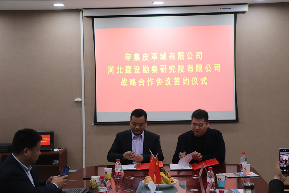 11月1日,陽光和煦,微風送爽,秋意正濃,河北建設勘察研究院有限公司同辛集皮革城集團有限公司戰(zhàn)略合作協(xié)議簽約儀式,在辛集國際皮革城盛大舉行。