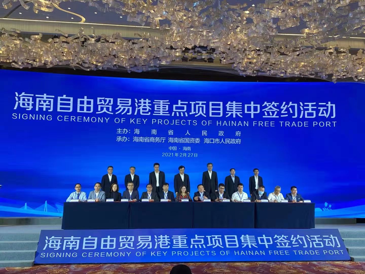 2021年2月27日下午,海南自由貿(mào)易港2021年(第一批)重點項目集中簽約儀式在??谑泻D嫌e館舉行。受公司領(lǐng)導(dǎo)委托,張樹臣同志代表我公司出席簽約儀式,并順利與海口市江東新區(qū)成功簽約。