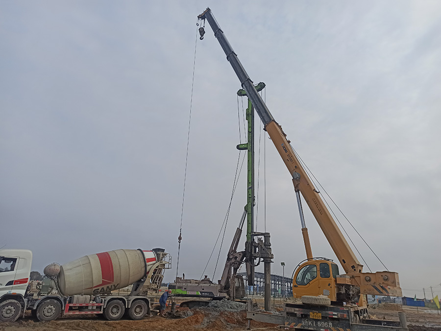 本項(xiàng)目一體化罐區(qū)化工原料產(chǎn)品罐區(qū)樁基工程,設(shè)計(jì)為CFG樁,樁徑為500mm,樁長(zhǎng)為12m,共1054根,工程量2483.43m³;液氨罐組樁基工程,采用樁徑800mm旋挖成孔灌注樁,基樁分類(lèi)為端承樁。樁長(zhǎng)為36-39m,共88根,工程量1616m³;