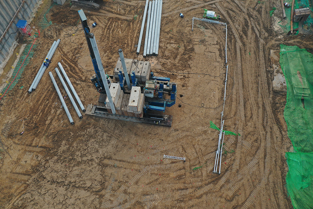 受河北雄安商務服務中心有限公司委托,我公司承擔了本項目的管樁施工、配合樁基檢測時的土方開挖工作。其中PHC01、PHC02、PHC03型樁合計2296根(共計42681米),挖一般土方約750立方米。