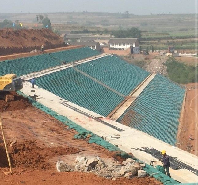 受山西晉煤華昱煤化工有限責(zé)任公司委托,我公司承接了場地邊坡工程(第三標(biāo)段)施工任務(wù),主要包括加筋土生態(tài)袋護(hù)坡(永久邊坡)、加筋土生態(tài)袋護(hù)坡(永久邊坡)+生態(tài)袋堆砌護(hù)坡(臨時邊坡)、生態(tài)袋堆砌護(hù)坡(臨時邊坡)和滲溝及防水、排水等工程施工。