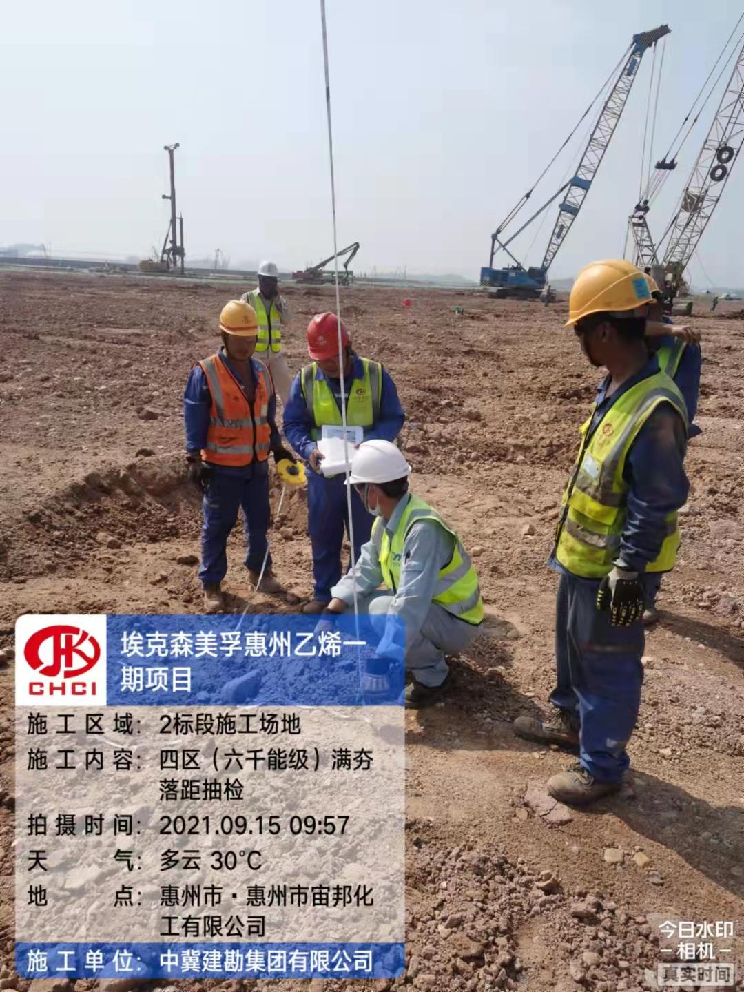 本工程位于廣東省惠州市。受埃克森美孚(惠州)化工有限公司委托,我公司承擔(dān)強夯施工項目。本項目主要施工內(nèi)容為現(xiàn)場夯點的布置、現(xiàn)場夯點的測放、夯機的就位、夯坑的驗收及夯坑的回填、滿夯的控制、滿夯后整個場地的整平及驗收。其中4000KN·m強夯面積27866㎡,6000KN·m強夯面積334533㎡,8000KN·m強夯面積32090㎡。