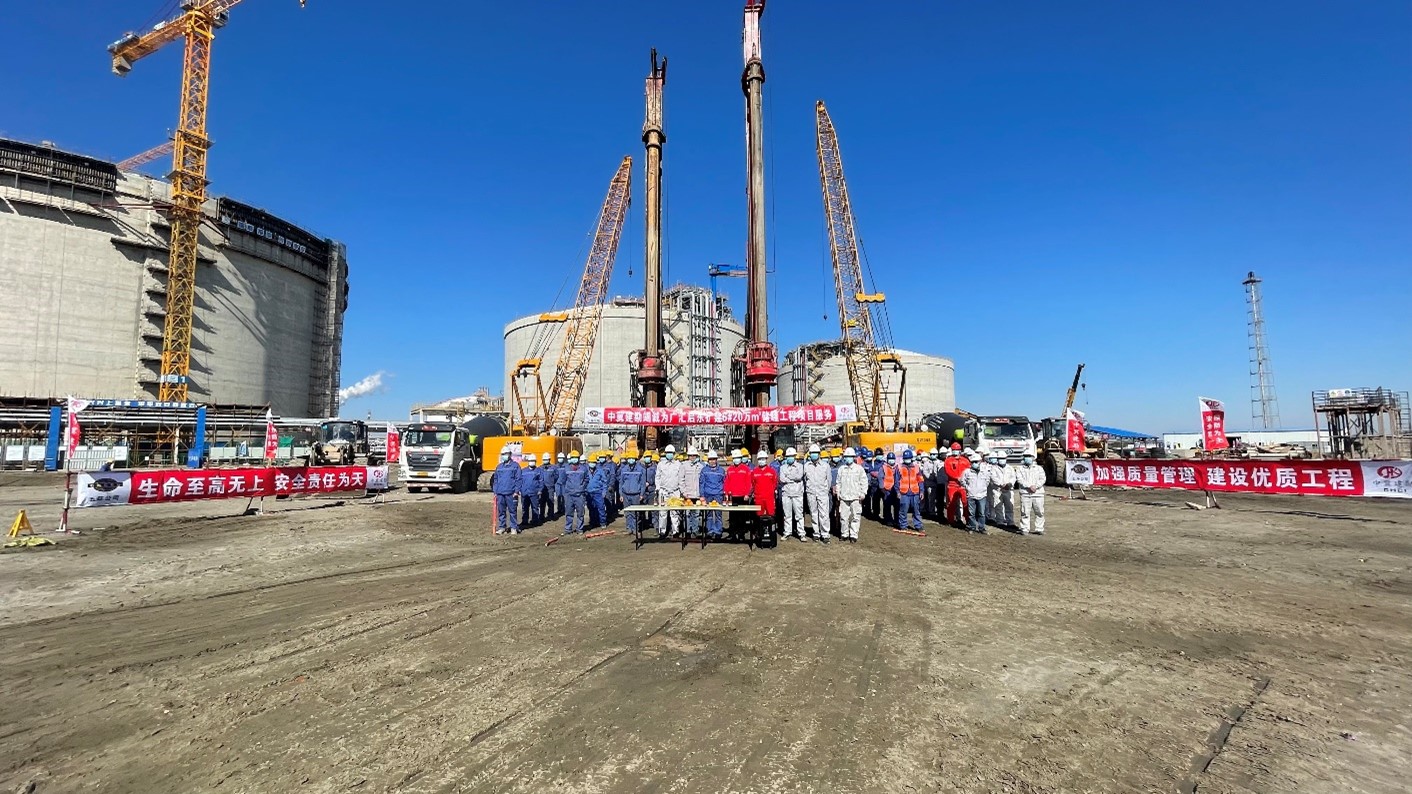 本項目位于江蘇省啟東市,由廣匯能源綜合物流發(fā)展有限責任公司投資建設,我公司承擔本項目樁基施工。樁基為鋼筋混凝土灌注樁,罐下布置400根樁,樁間距最小距離為3.025m,樁徑均為1200mm。施工采用樁柱一體化施工工藝,成孔采用旋挖鉆機成孔。共計施工完成400根樁,于2021年10月25日開工,完工時間為2022年01月25日,實際工期完成情況滿足合同工期要求。