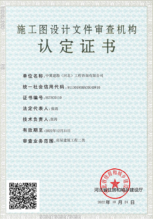 我公司全資控股子公司——中冀建勘(河北)工程咨詢有限公司,于2022年10月24日取得施工圖設(shè)計(jì)文件審查機(jī)構(gòu)認(rèn)定證書,可承接二級(jí)及以下房屋建筑工程的施工圖審查業(yè)務(wù)。隨著施工圖設(shè)計(jì)文件審查機(jī)構(gòu)認(rèn)定證書的取得,為我們進(jìn)一步積極開展市場經(jīng)營工作,努力將施工圖審查業(yè)務(wù)打造成為新的經(jīng)營創(chuàng)收增長點(diǎn),提供了新的契機(jī)和基礎(chǔ)。