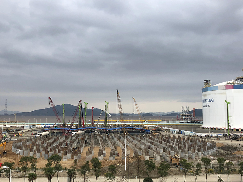浙江LNG接收站二期工程項目是國家天然氣產(chǎn)供儲銷體系重點建設工程,項目在一期工程基礎上新增三座16萬方LNG儲罐及配套工藝設施。我公司承擔了3座16萬方儲罐的工程樁施工任務,工程樁于2018年7月5日開工,2018年11月29日完工,工程質(zhì)量一次驗收全部合格,其中E罐工程樁Ⅰ類樁率99.5%,D、F罐工程樁Ⅰ類樁率98.05%。