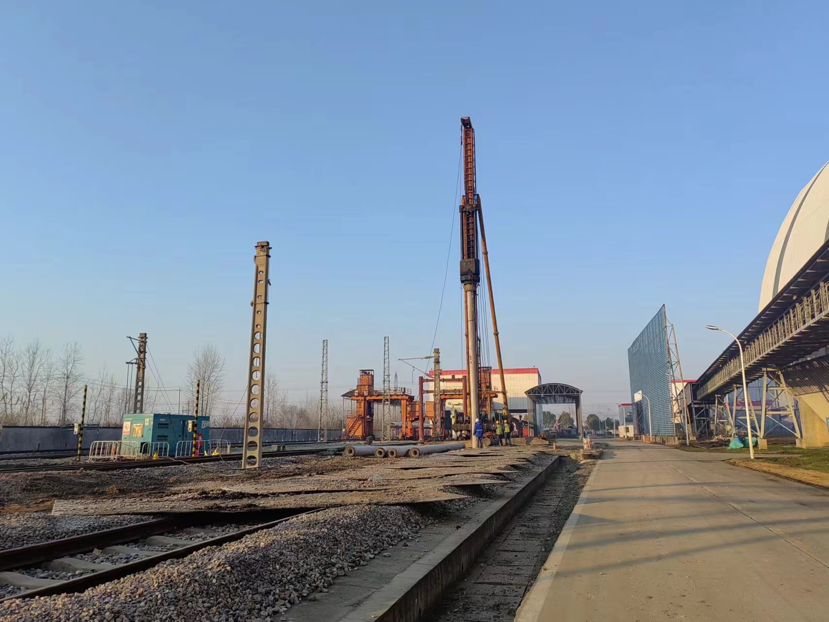 H2標段樁基工程于2023年7月11日開工, 2024年1月28日施工完成。本工程因施工區(qū)域較為分散,項目管理難度加大。為此,項目部積極與設計院就出圖順序進行溝通,提前籌劃安排行進方向的管樁原材料配備和現(xiàn)場道路鋪設、排水設施供應等后勤保障工作,保證樁機施工的連續(xù)性,確保了建設單位的工期時間要求。此外,管帶機施工區(qū)域位于三期電廠內(nèi),涉及10kV高壓線拆除、大棚拆遷、樹木移除、監(jiān)控拆除、屏風拆除等工作。項目部積極與建設方協(xié)調溝通,全力推進施工區(qū)域內(nèi)障礙物拆除和清理工作。因部分樁位在火車鐵軌上,項目部積極與鐵路方溝通,與建設方、監(jiān)理方謀劃施工方案,采取相應措施,圓滿完成了施工任務。經(jīng)第三方檢測,合格率100%。