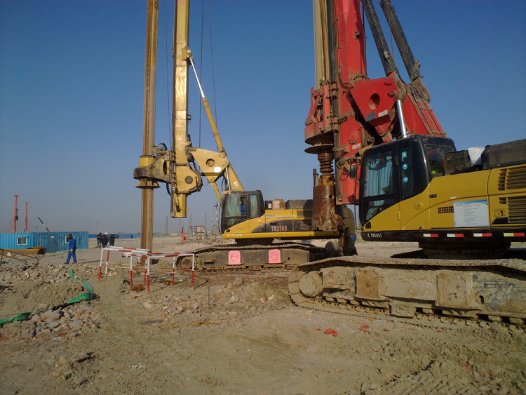 本工程共投入4臺旋挖鉆機(jī)、1套攪拌站、5臺50裝載機(jī)、4臺25噸吊車和4臺振沖器及其它配套施工機(jī)械設(shè)備,灌注樁共完成理論方量19169.7m3、振沖碎石樁理論方量13266m3。本工程試樁于2012年10月11日開始施工,12個(gè)日歷天完成。工程樁和振沖碎石樁于2013年1月2日正式開工,3月25日全部完成施工任務(wù)。