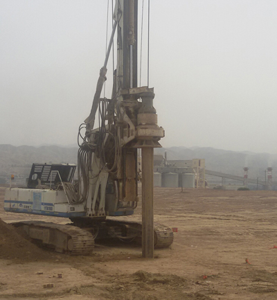 施工內(nèi)容及工程量:樁位測放,成孔、鋼筋籠制作安裝,旋挖鉆機成孔,混凝土攪拌,凝土灌注,泥漿渣土處理等工作。完成樁徑800mm的灌注樁273根,樁長55m,充盈系數(shù)為1.037。