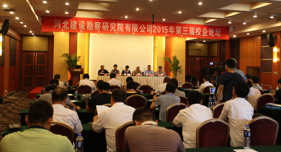 2015年8月8日~9日,“第三屆河北建設(shè)勘察研究院有限公司校企論壇”在石家莊市舉行。會議由勘察大師梁金國同志主持,住房和城鄉(xiāng)建設(shè)廳領(lǐng)導(dǎo)、公司李華偉總經(jīng)理、聶慶科總工程師出席并作了重要講話。石家莊鐵道大學(xué)土木工程學(xué)院王明生院長代表參會院校講話。參加會議的院校共19所,公司首席工程師和部分技術(shù)人員參加了會議。