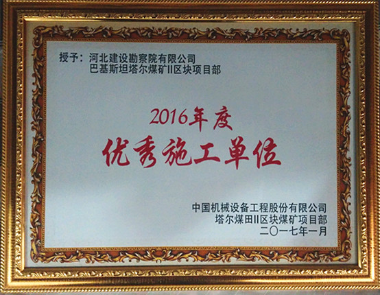 1月19日,巴基斯坦塔爾煤礦總承包方CMEC舉行2016年度優(yōu)秀集體及先進(jìn)個(gè)人表彰大會(huì),我公司疏干井項(xiàng)目部榮獲CMEC煤礦優(yōu)秀施工項(xiàng)目部稱號(hào),鄭聚印等三人及一名巴籍員工獲得優(yōu)秀先進(jìn)個(gè)人稱號(hào)。CMEC塔爾煤礦項(xiàng)目總經(jīng)理高度贊揚(yáng)了我公司不畏艱辛,排除萬(wàn)難,按期完成疏干井施工工作,給下一步煤礦投產(chǎn)奠定了基礎(chǔ)。同時(shí),希望我公司繼續(xù)發(fā)揚(yáng)苦干快干的精神,如期完成疏干井排水管道的施工任務(wù)。