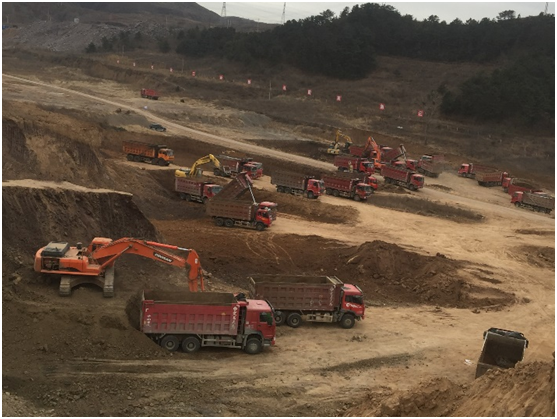 由于本工程所處地質(zhì)條件的特殊性,施工過程中爆破工作量很大,同時由于山路陡峭崎嶇,給排土場道路的施工帶來了很大難度。施工過程中,我單位秉持精心安排、用心服務的管理理念,開挖過程中合理劃分施工區(qū)域,根據(jù)不同地塊的石方開挖高度采取合理的鉆爆施工方案,既避免了交叉作業(yè)帶來的安全問題同時也提高了施工效率。