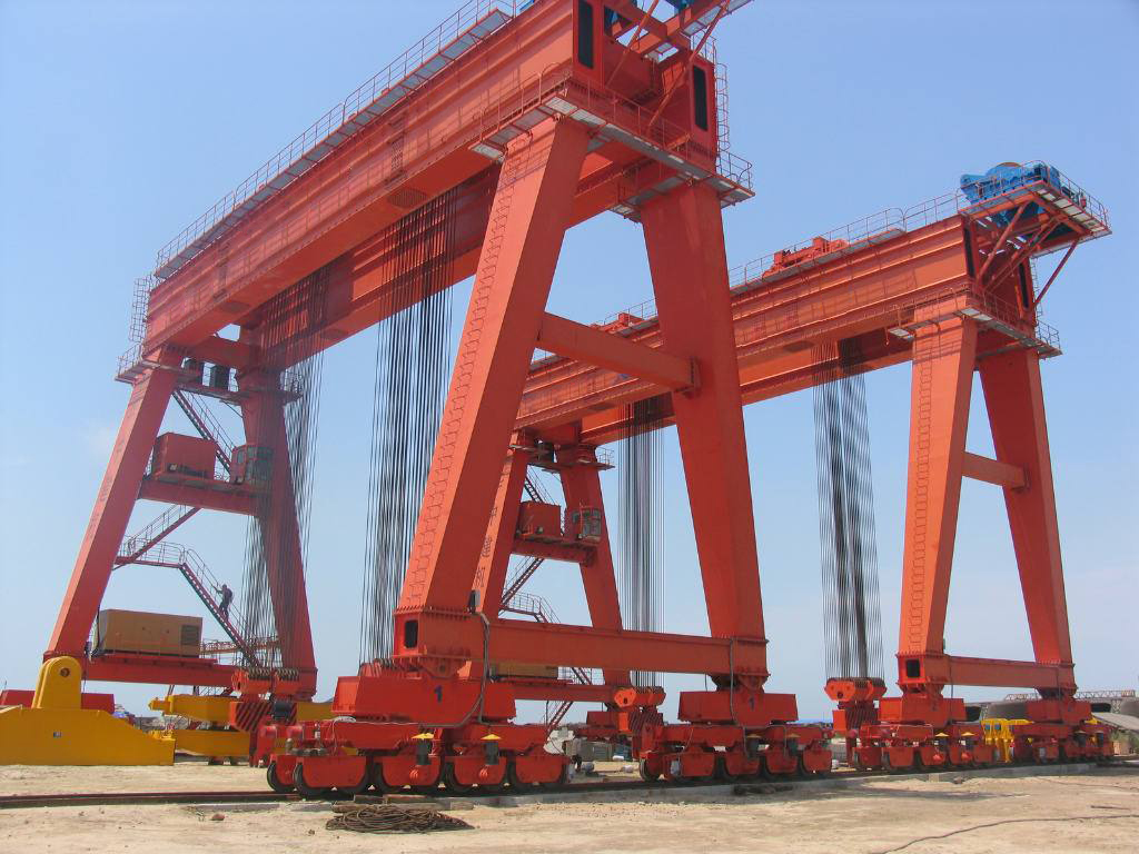 進(jìn)行大型盾構(gòu)機(jī)盾體和刀盤組裝的200噸龍門吊設(shè)備