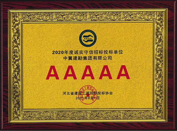 近日,公司被河北省建設(shè)工程招標(biāo)投標(biāo)協(xié)會評為2020年度河北省建設(shè)工程招標(biāo)投標(biāo)誠實(shí)守信5A級施工企業(yè)。