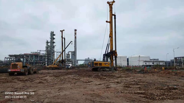 本項目位于廣東省惠州市,受中海油惠州石化有限公司委托,我公司負責該工程的灌注樁樁施工。本工程于2020年09月28日開始施工,于2021年6月14日結束,共計施工灌注樁2644根,其中328根樁徑1000mm灌注樁,1081根樁徑800mm灌注樁,1235根樁徑600mm灌注樁。