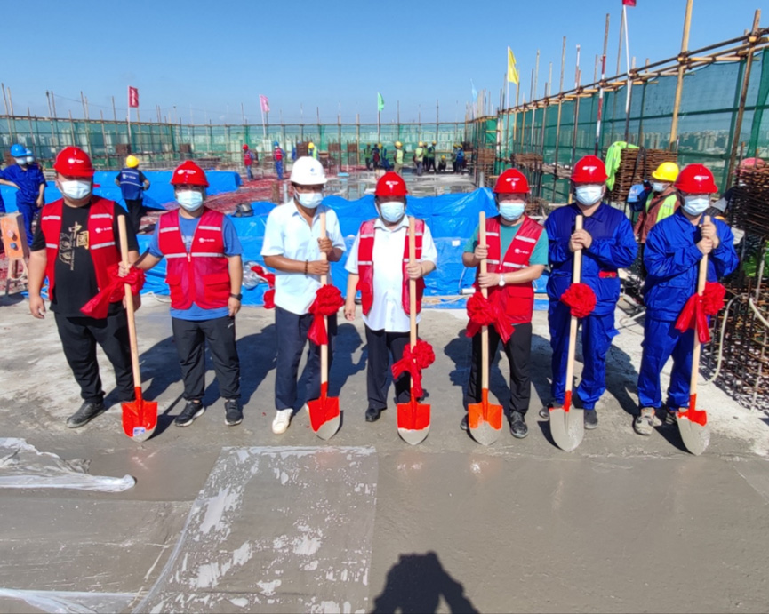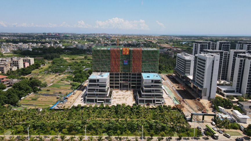 海南辦公樓占地面積15畝,地下二層,地上12層,總建筑面積47527平方米。工程自2021年9月13日現(xiàn)場舉辦開工儀式以來,經(jīng)過11個月的合力攻堅,克服高溫、臺風(fēng)、疫情等重重難關(guān),如期實現(xiàn)了一個個關(guān)鍵節(jié)點:2021年10月25日第一根基礎(chǔ)工程樁混凝土灌注順利完成;2021年12月4日開始8萬方土方開挖的任務(wù);2022年1月29日,實現(xiàn)了基礎(chǔ)筏板的澆筑;2022年4月10日,完成了地下二層車庫施工,主體如期“沖”出正負零;2022年6月24日,東、西配樓主體按計劃日期封頂。如今項目迎來了主體封頂?shù)睦锍瘫?,為后期工程樹立了標桿!