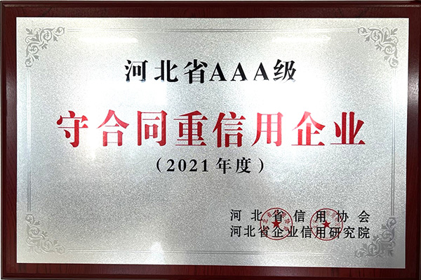 根據(jù)河北省信用辦、河北省信用協(xié)會等七部門印發(fā)的《關(guān)于開展“推進(jìn)誠信建設(shè)共建信用河北”的活動方案》的通知及《關(guān)于2021年度河北省“守合同重信用”企業(yè)申報認(rèn)定工作的通知》,我公司被評為“河北省誠信共建企業(yè)”和“河北省AAA級守合同重信用企業(yè)”。