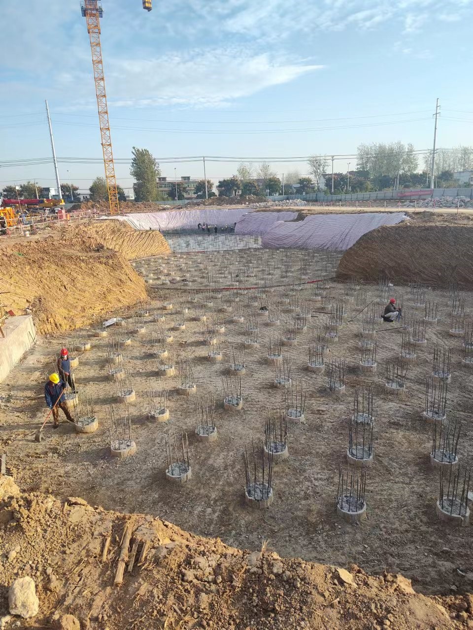 本項目位于阜陽市潁東區(qū),由安徽昊源化工集團(tuán)有限公司投資建設(shè),我公司負(fù)責(zé)本項目樁基施工。施工場地為潁河漫灘,以粉質(zhì)黏土、粉土為主,地下水位在26m左右。設(shè)計樁型為旋挖鉆孔灌注樁,筒倉設(shè)計樁長約30m,樁徑600mm,樁數(shù)500余根。于2022年8月3日開工,2022年10月25日完工。