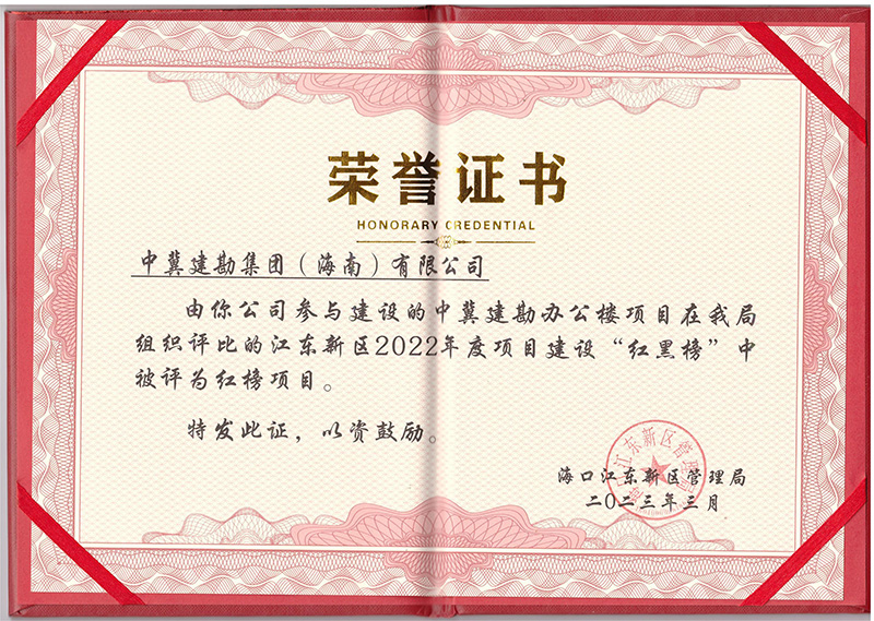人勤春來早,實(shí)干正當(dāng)時(shí)。2023年3月31日,為促進(jìn)項(xiàng)目建設(shè)進(jìn)度,營(yíng)造“安全、文明、有序”的建設(shè)氛圍,??诮瓥|新區(qū)管理局公布了2022年度項(xiàng)目建設(shè)“紅黑榜”,“中冀建勘辦公樓”項(xiàng)目再次受到表彰,并為項(xiàng)目頒發(fā)了榮譽(yù)證書。