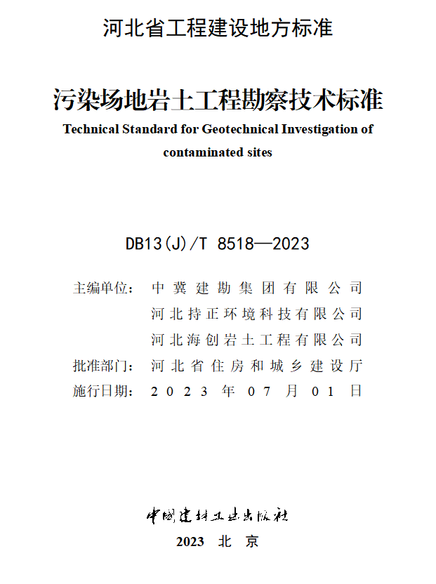 近日,我公司主編的河北省工程建設(shè)地方標準《地下智能立體停車庫技術(shù)標準》(DB13(J)/T 8500-2022)、《污染場地巖土工程勘察技術(shù)標準》(DB13(J)/T 8518-2023)由河北省住房和城鄉(xiāng)建設(shè)廳正式發(fā)布,并印刷出版發(fā)行,分別將自2023年5月1日和7月1日起實施。