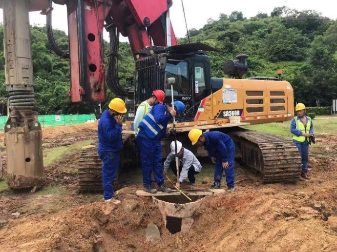 在進(jìn)行GIS區(qū)域樁基施工過程中,發(fā)現(xiàn)該施工區(qū)域的地下管線走向及位置與建設(shè)單位提供的竣工圖不符。項(xiàng)目部積極與設(shè)計(jì)、監(jiān)理、業(yè)主等單位協(xié)調(diào)溝通,采用人工挖探坑、金屬探測(cè)儀等方式探明地下管線,在保證施工進(jìn)度的同時(shí)也避免了因地下管線問題造成的施工事故。