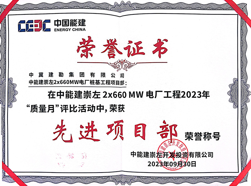 中能建崇左2×660MW電廠樁基工程,在施工過程中,項目部統(tǒng)一思想、統(tǒng)一步調(diào)、科學(xué)組織,精心部署,嚴(yán)格按照施工技術(shù)步驟與措施施工,層層落實(shí)安全,環(huán)環(huán)緊扣質(zhì)量,加大設(shè)備、人員投入,全力以赴做好各項工作。全體員工以頑強(qiáng)拼搏的施工風(fēng)范和服務(wù)業(yè)主的理念給我公司留下了深刻印象,贏得了業(yè)主及各方的高度稱贊。