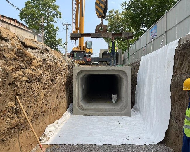 本工程主要施工特點(diǎn)是在保證周邊居民正常生活排水的前提下,在淤泥質(zhì)粉土地層中通過開槽法進(jìn)行雨污水管道安裝施工。工程于2023年4月20日開工,12月15日完工。通過對淤泥質(zhì)粉土地層的加固處理以及管道安裝施工、接縫處理、回填處理和路面基層施工處理,歷時239天,圓滿完成合同任務(wù),經(jīng)第三方檢測,合格率100%。目前申報了三項(xiàng)實(shí)用新型專利,一項(xiàng)實(shí)用新型工法。