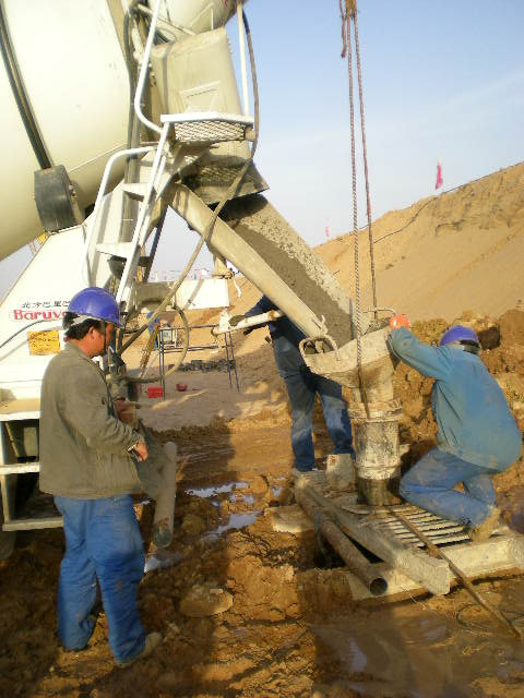該工程位于陜西省榆林市西南的橫山縣白界鄉(xiāng)馬扎梁村附近,包括空冷區(qū)域,主廠房區(qū)域樁基。樁基工程自2008年4月26日開工,至2009年3月18日竣工,實際完成鋼筋混凝土灌注樁1981根,設(shè)計砼方量36252.75m3,澆筑混凝土39664.2m3。