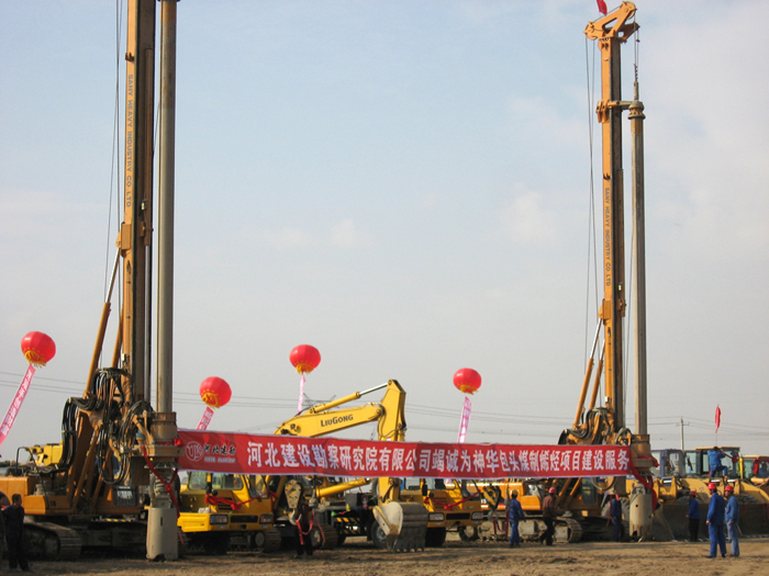 神華包頭煤制烯烴項(xiàng)目工業(yè)廠址位于包頭市九原區(qū)哈林格爾鎮(zhèn)西南,由包頭煤化工有限公司籌建,一期建設(shè)規(guī)模為180萬噸/年甲醇及相應(yīng)的公用工程、輔助生產(chǎn)設(shè)施。樁基工程自2007年9月23日開工,至2008年5月16日竣工,采用后壓漿旋挖鉆孔灌注樁,設(shè)計(jì)樁徑為Φ800mm,樁長為14.1~35.2m。共施工基樁3294根,設(shè)計(jì)混凝土方量為46989.9m3,實(shí)際灌注方量52128.1m3,樁身砼強(qiáng)度等級為C30、C35兩種。